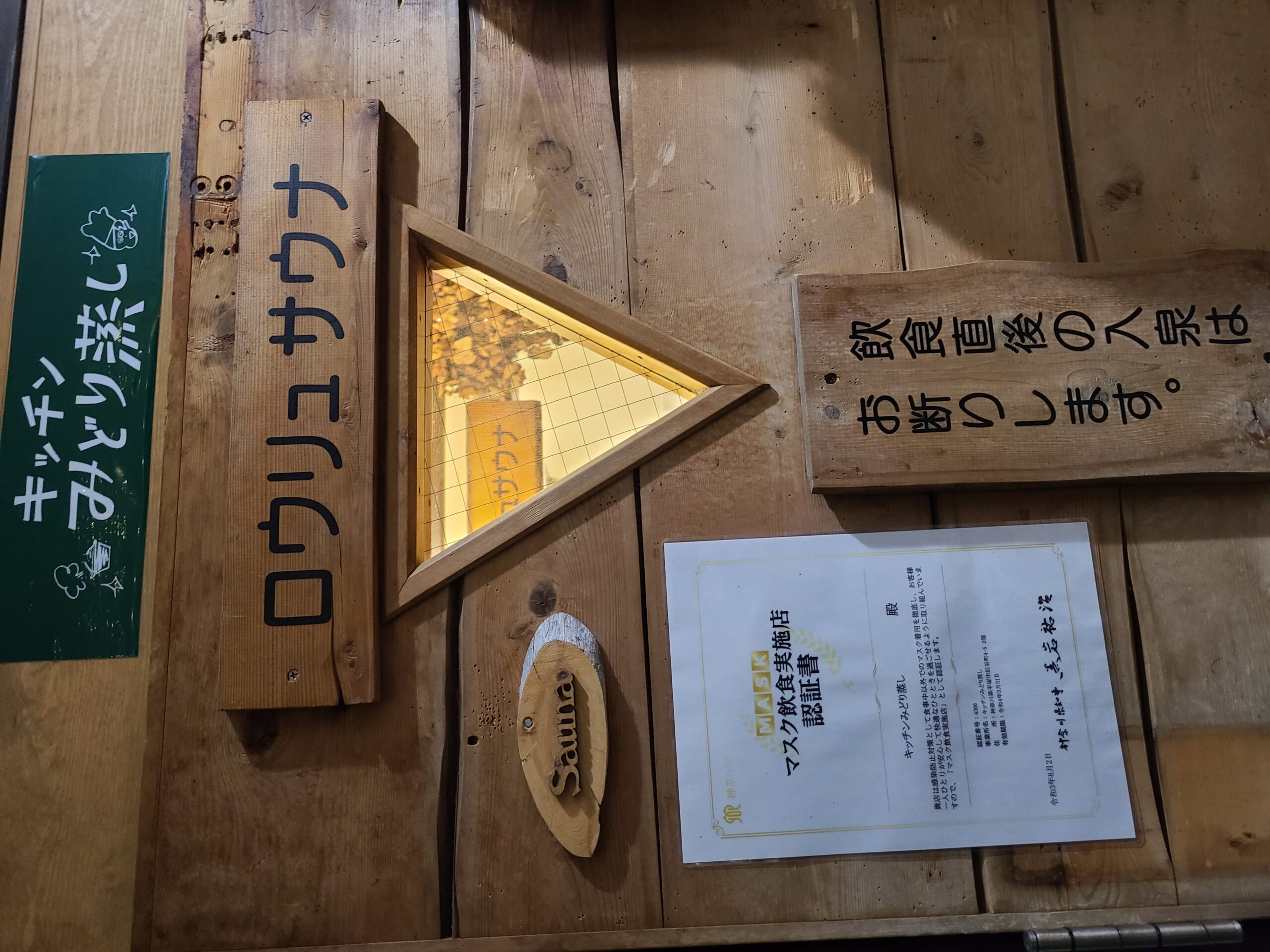 店内の至る所に、グリーンサウナの装飾品があり、汗腺がウルウルする。シーソーゲームの日本シリーズを観戦しながら、楽しい一時を過ごす。