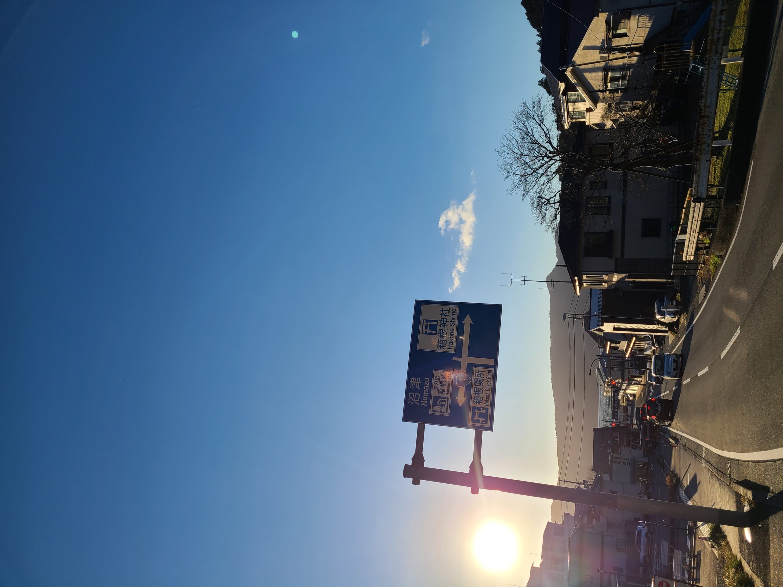 国道1号線沿いを小田原方面へ。坂道を登りきったら富士山が真っ正面に現れて、思わず唸る。