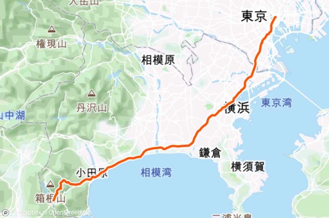 公共交通機関を利用せず、大手町から芦ノ湖まで、可能な限り楽しんで走る!!