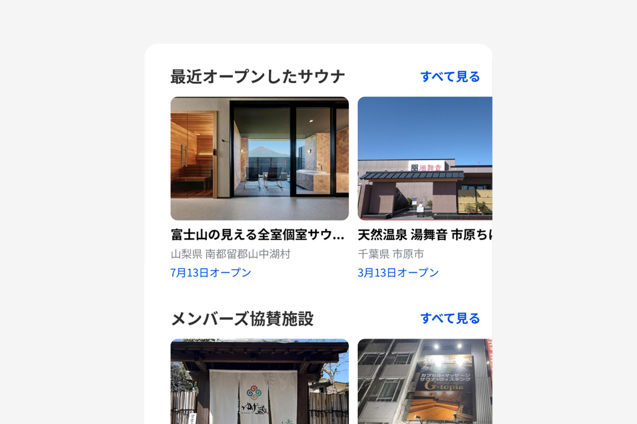 今回ご紹介した以外にも、新しいホーム画面にはまだまだいろんな切り口でサウナを紹介しています。