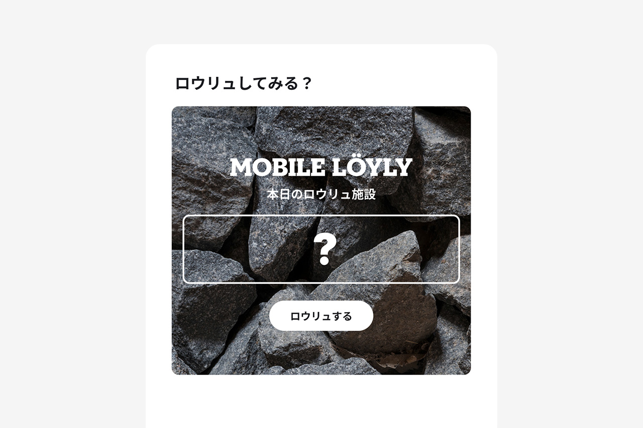 サウナストーンにロウリュをするようにスマホを傾けると施設さんから提供いただいたロウリュ音が聞ける機能です。日替わりでいろんな施設のロウリュを疑似体験することができます。今後、一度聞いたロウリュ音は「ロウリュコレクション」として集めて楽しめるアップデートも予定しています!