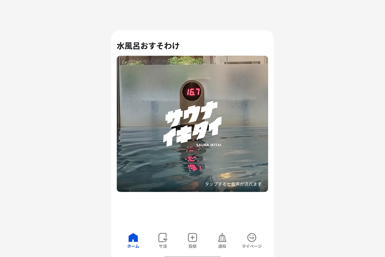 このホーム画面での偶然の出会いがきっかけで、サウナがもっと好きになったり、サウナチャンスが生まれたり、サウナを一生の趣味として楽しむ方が増えたり、みなさんのサウナライフが今よりちょっぴり楽しくなるような、そんなお手伝いができれば嬉しいです!