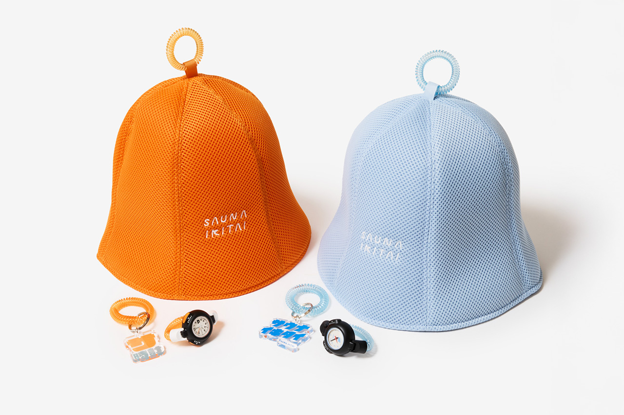 一般販売を記念して、コラボグッズも登場! サ時計の特徴でもあるカールバンドを取り入れたメッシュサウナハット、サウナイキタイとサ時計のロゴとカールバンドを組み合わせたキーホルダーを作りました。 サウナイキタイSTOREと一部サウナ施設で販売するのでチェックしてみてくださいね!
