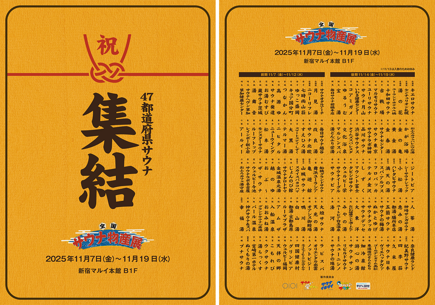 第5回目となる「全国サウナ物産展2025」を、2025年11月7日(金)〜11月19日(水)の期間、新宿マルイ本館 B1Fにて開催します!