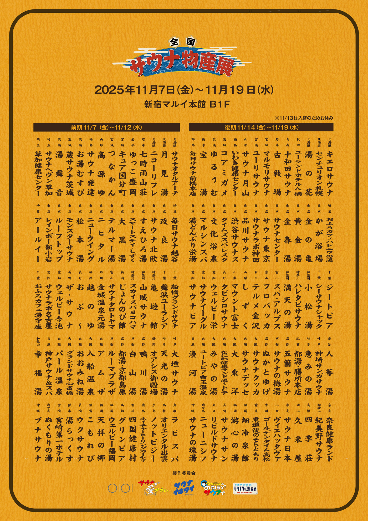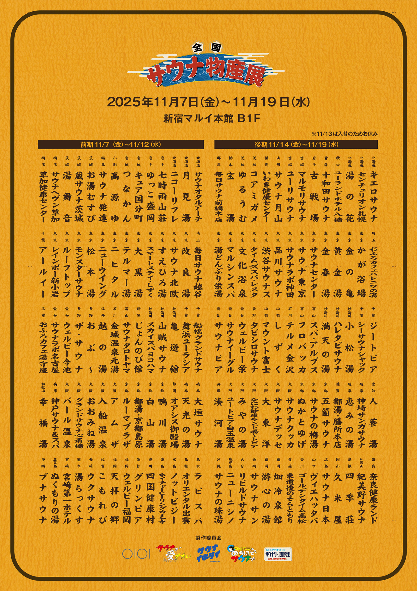 全国サウナ物産展では期間中に出展するサウナ施設がガラリと変わります。