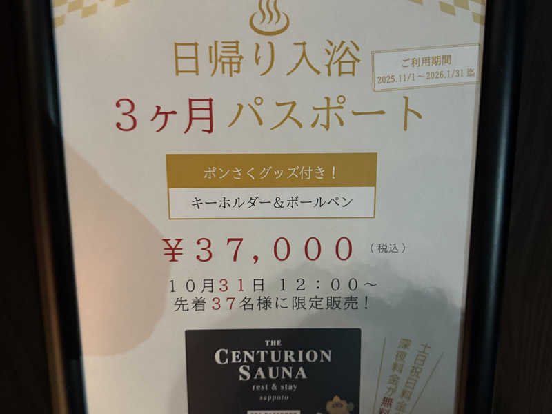 本日も2時間ダブルぺぺロウリュでいい汗かいた☺️💦3代目パスポートの期限も残りわずか🥲センチュリオンを最後まで満喫するぞ❗️♨️