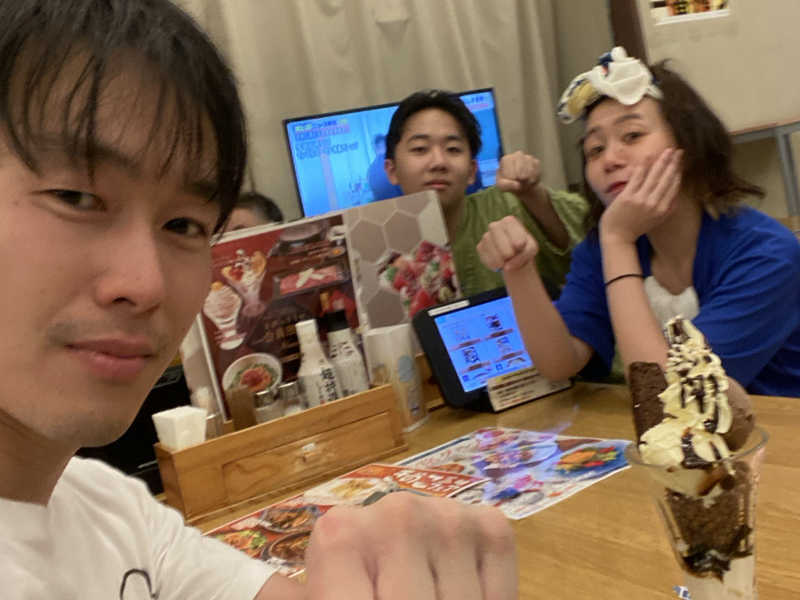 一回ここでチョコパフェを食らう。中島親子とパシャリ。