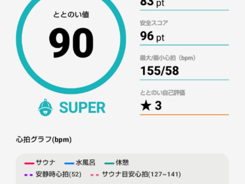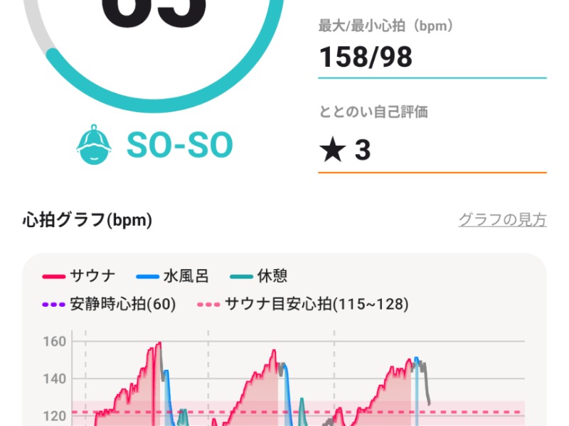 サウォッチも持参。あらら、あまり高くないととのい値でしたが、気持ちの良い平日入浴でした。