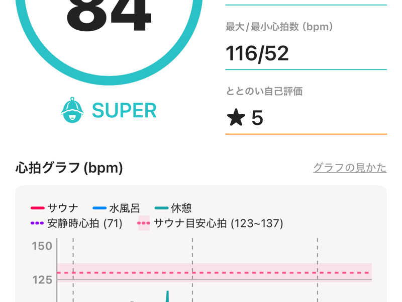低音ドライサウナはぬるいが、高温ドライサウナは毎回滝の様にじんわりと汗がでる!笑。10分以上ぐらい入っているが息苦しさもなく、無理なくサ活できている✨!