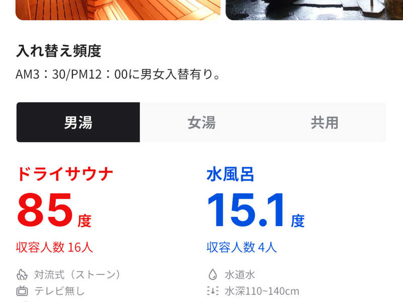 水風呂はキンキンに冷えている上に、なんと飲水可能。飲んでみると驚くほど冷たくて、体に染み渡る美味しさでした。