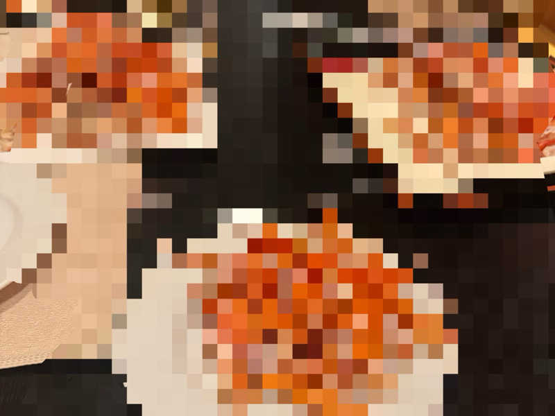 朝食会場に行くと8時回スルーのあおさんとぺろさんの前に🦀⛰️😅