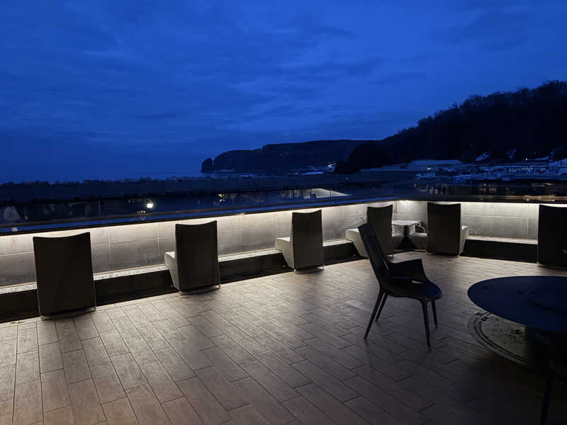 外気浴も水平線を眺めることができて、開放感があり素晴らしい。ウミネコの鳴き声をBGMに深くリラックスできる。