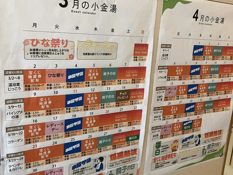今日は2、3人で温泉、サウナ使い放題