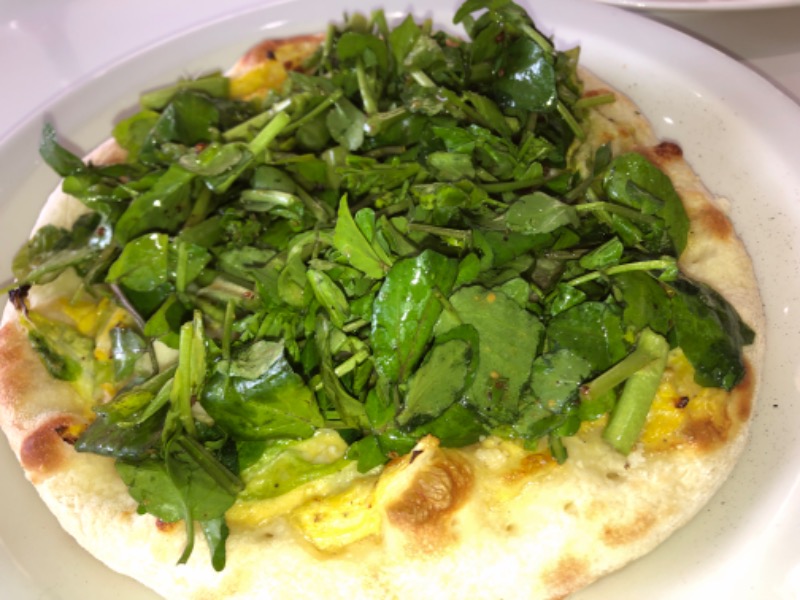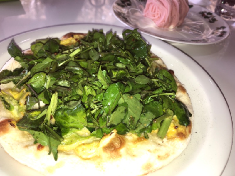 ピザ生地にキャベツ🥬カルボナーラソースをのせて焼き上げ