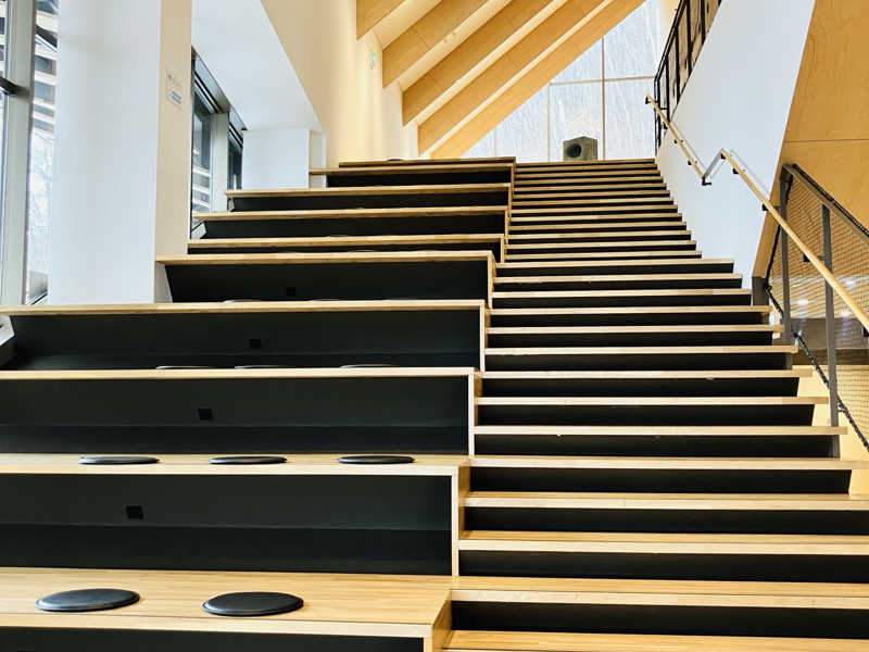 2階の休憩スペースは気づけば席がほぼ埋まるくらい。