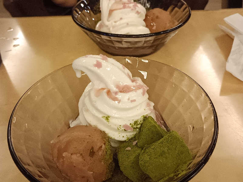Instaフォロー画面から塩昆布ポテトフライ100円で食べてから締めに桜ぜんざいまで食べてちょっぴりくるしいから休憩して🤭
