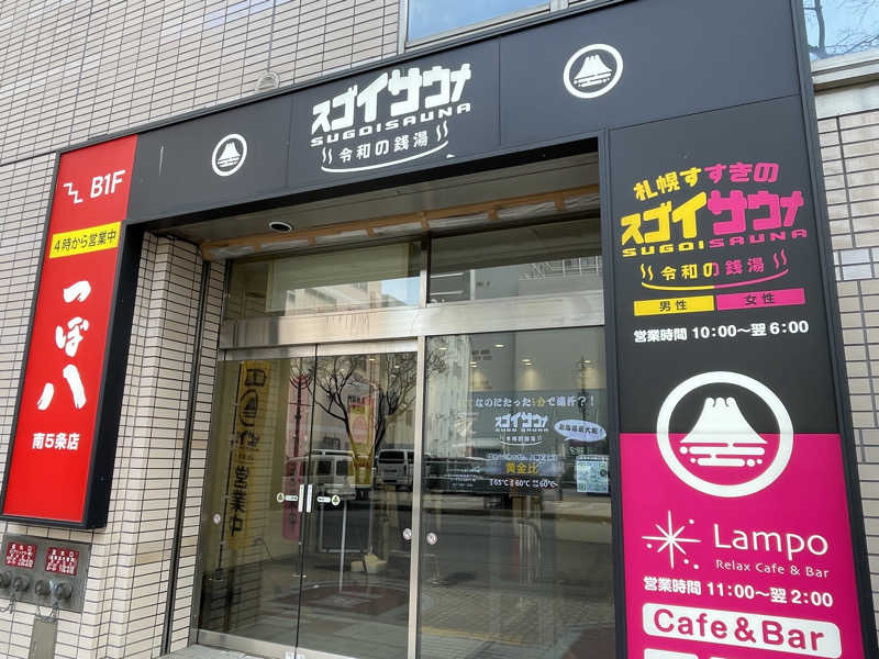 すすきの駅3番出口から徒歩数分、札幌最大の歓楽街の中心にスゴイサウナ すすきの店があります。
