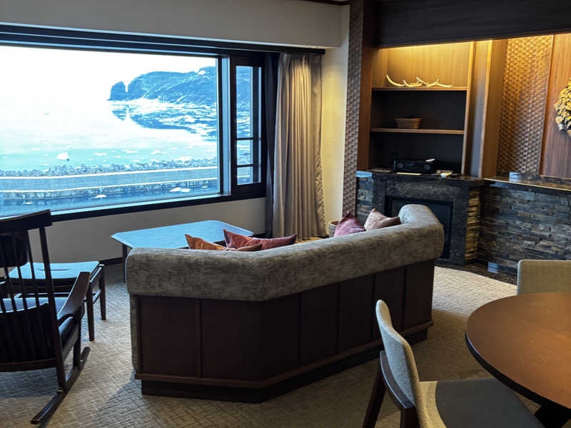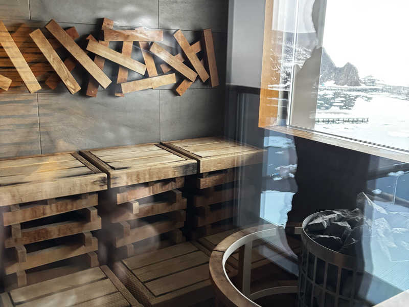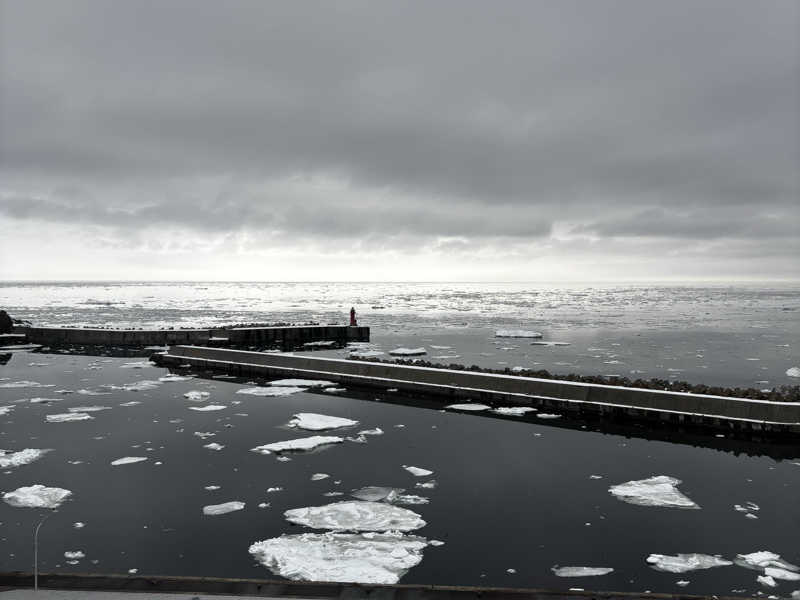 熱々のサ室には大きな窓。3月の時期ハズレなのに、たまたま流氷が接眼していて最高の景色でした♪