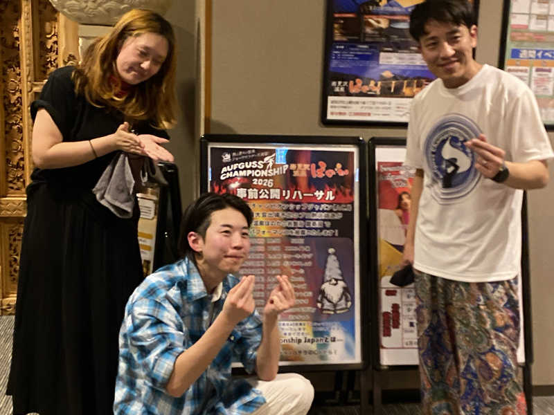 サウナハット被って記念撮影