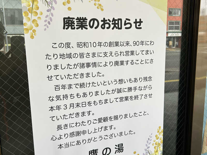 ノイシュロス小樽が明日から価格改定だと思い出し、訪問したがなんと浴室内の天井の修理とのことで3/30~4/23まで日帰り入浴中止とのこと…残念でしたが、私には朝里川温泉ホテルがある。こちらも少しお久しぶりで露店の水風呂はどんなもんかと気にはなっておりました。