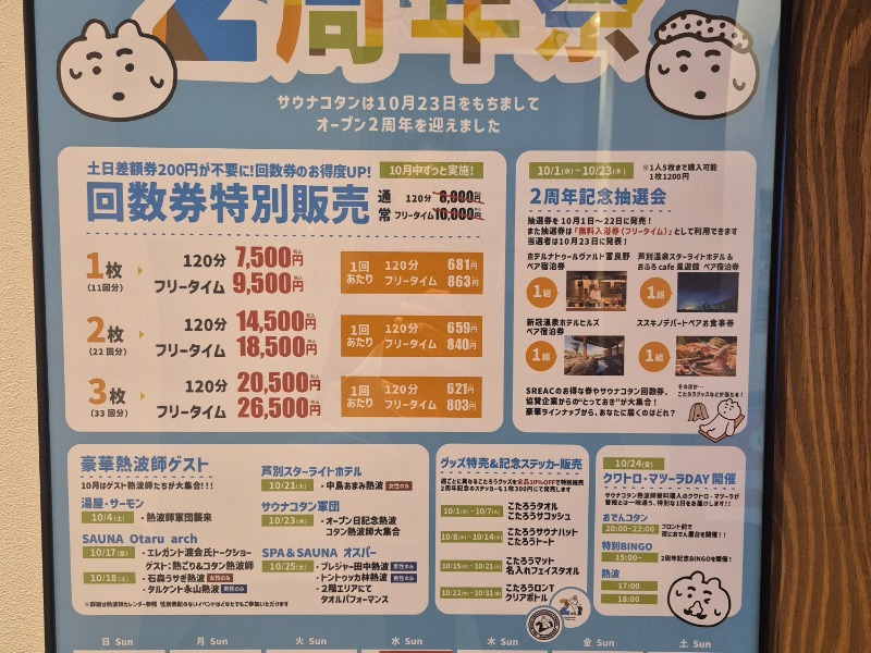 丁度2周年祭で回数券が安い。単身赴任で無ければ間違いなく購入したが、ここは我慢。