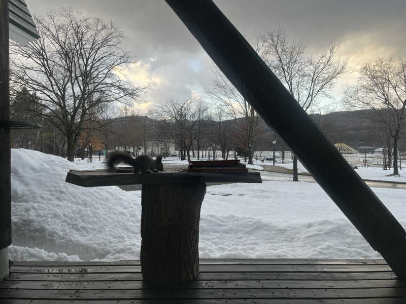 小窓の外には野生のリスが🐿️