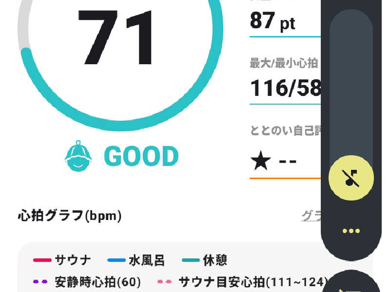 2セット目3セット目とオートロウリュ3回受けるかたちとなりましたが、ロウリュが来るとしっかり熱くて気持ち良かった。