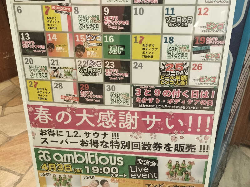着いてみると昨日とは打って変わって大盛況。サ室も時折満室になるほどに人で溢れかえっていた。同僚もたくさん、常連もたくさん、一見さんもたくさん、さらには教え子もいた。サウナに教え子と入るってのも中々乙なものだ。
