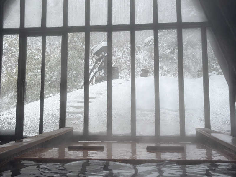 ・露天風呂の柵の隙間から見える雪景色❄️