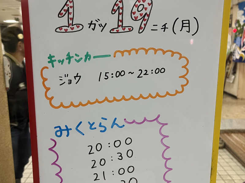 2人とも勝手が分からないため通りかかったレスさんに聞き、整理券は18時半配布と知る。まだ時間があるため浴室に行くと👨🏻🦲本物発見💡