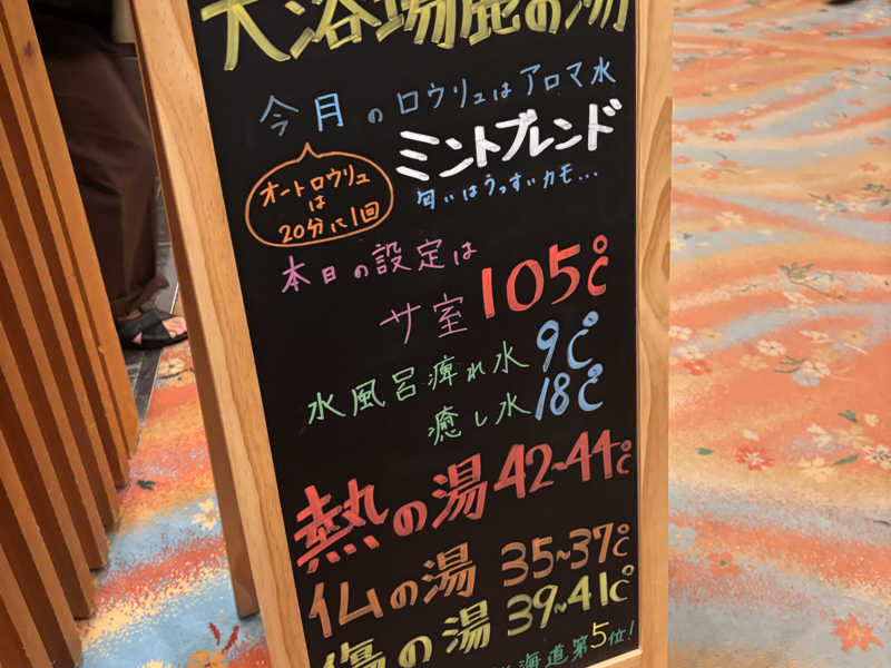 ロウリュはスタッフさんのみ出来る仕様。じっくりと時間かけて柄杓3杯のロウリュ後は汗が噴き出る。ストウブの下にも若干の水が溜まってる。40分以上ずーっとストウブがブツブツ言ってて、ロウリュは1時間毎30分のタイミングらしい。