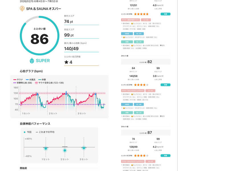 遠赤はいい感じで汗かけましたが、セルフは80℃といつもより大分ぬるい…。混んでいて、扉の開閉も多かったからかな?
