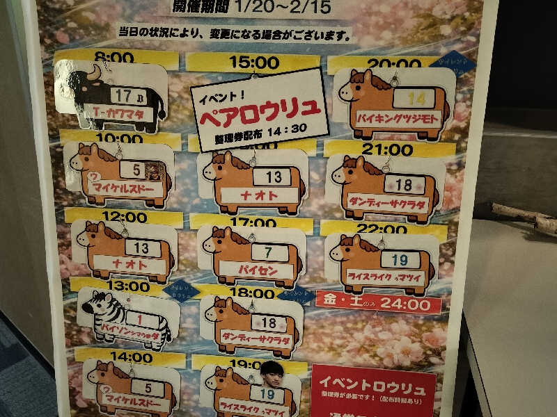 1500のペアロウリュの整理券を早くもらわないと無くなりますよ!とアドバイスいただき