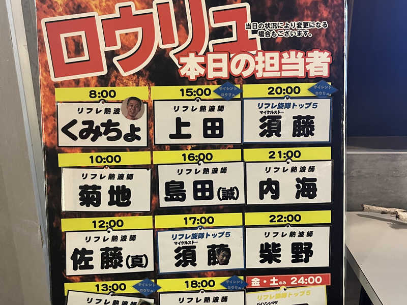 そう言えば前はロウリュに15分指定も砂時計も無かったような気がする、前にストーブに穴空いたって話してたからその影響か。