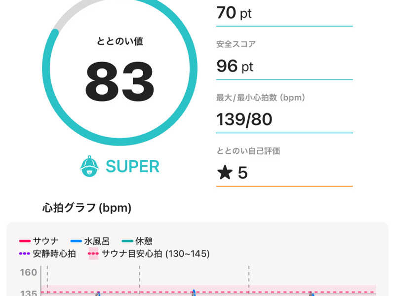 サウナ96℃6分 水風呂11.8℃30秒 外気浴2分 屋内休憩5分 給水