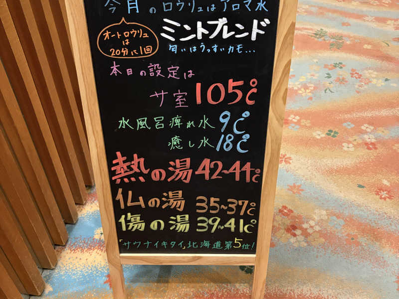 オートロウリュが作動する時間がわからなかったですが、一人なのでセルフでしっかりと体感を上げる。じんわりと熱くなり、持続はしないけどいい感じでした