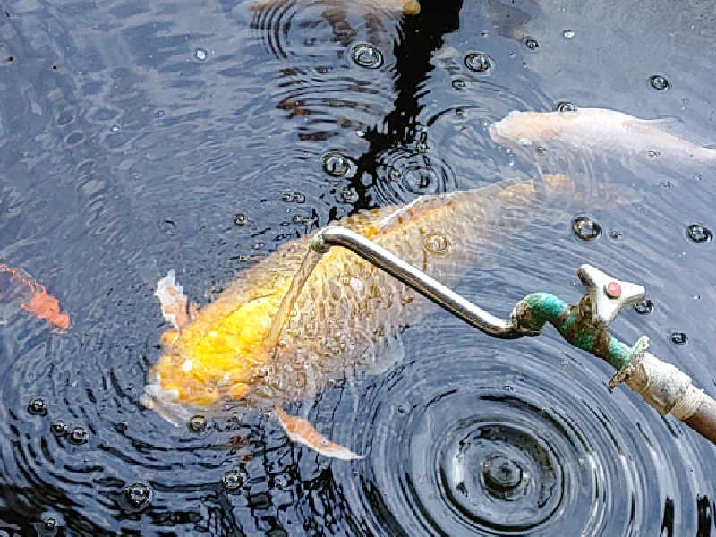 サウナに3セット入って、風呂上がりに池の鯉を眺めながら牛乳を飲んだ