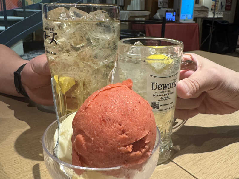 15時はセンチュリオンの裏番長「39 ヤマク―」師。曰く「先ほど確認しましたら、METOSは104℃。HARVIAは106℃。出入りが少ない時間ですのでアツくなっております」。めっちゃハ―ド!!さすが裏番長、来月周年イベントや泊まりで3200円など情報もサラッとPR。黄金グルシン水風呂からのギャラクシー風呂横のインフィニティで大昇天。ここでたまらず生ビール♪めっちゃキンキン。