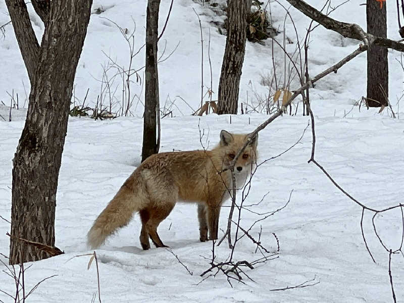 レンタカーで道中、野生のキツネを発見しつつ到着!