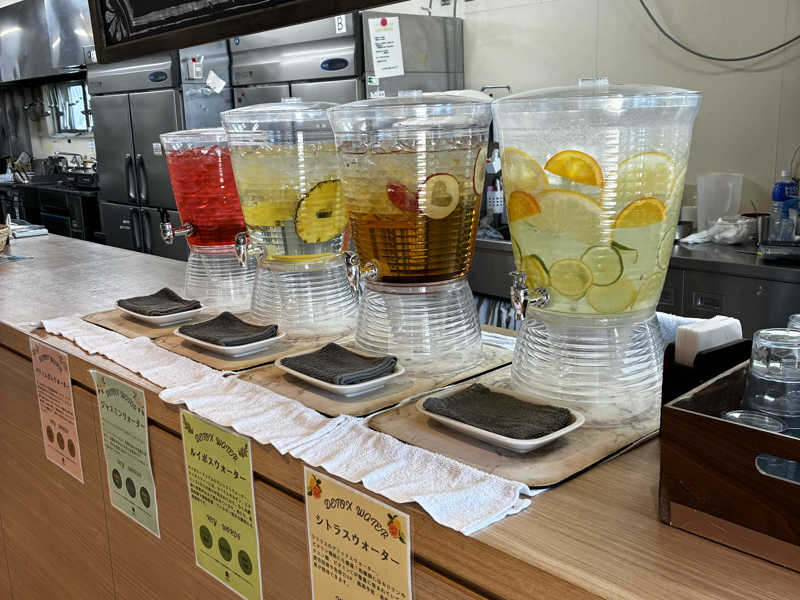 食事処には無料デトックスウォーターやコーヒーもあります。2階もゆっくりできそうな作り。3時間半の滞在。次はもっとゆっくりしよう☕️