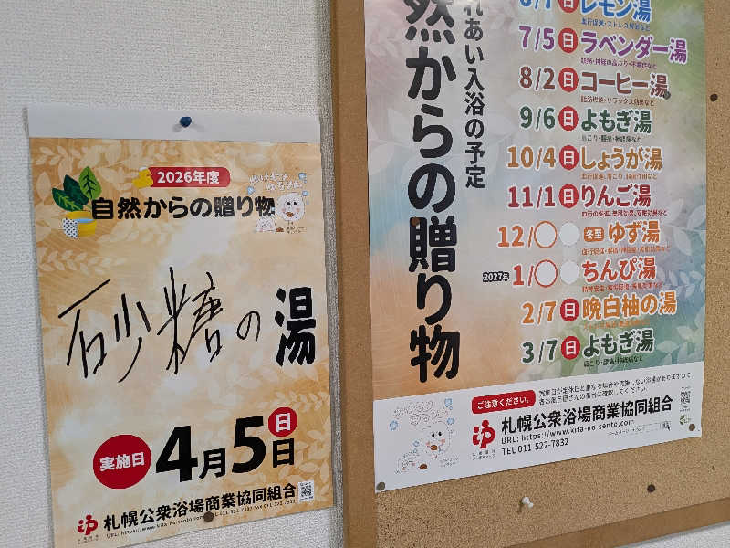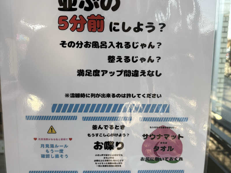 写真は、月見湯入口の熱波イベントの注意喚起の張り紙。いつも通りの誤字がこの施設っぽい!