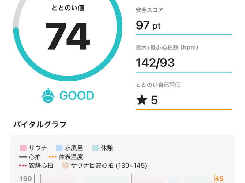 らんさん並みに熱い🥵ハルビア横なのもあるが、たぶんサウナ室全体が熱いんだろう