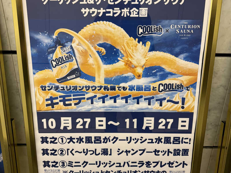 パスポートの期限も残りわずか🥲仕事終わりの少し遅めのセンチュリオン♨️10月27日よりアイスのクーリッシュとコラボ企画中🍨浴室の壁紙も青一色🟦🤩シャンプーもクーリッシュ使用でバニラの甘い香り🍨中々斬新なシャンプー🧴😳