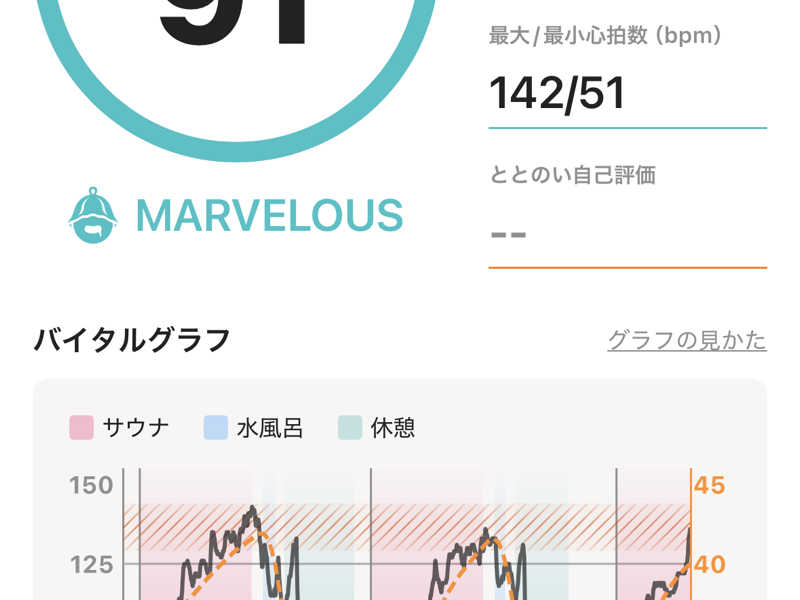 82℃と温度低めでしたが湿度が高くて気持ち良い9分間でした。