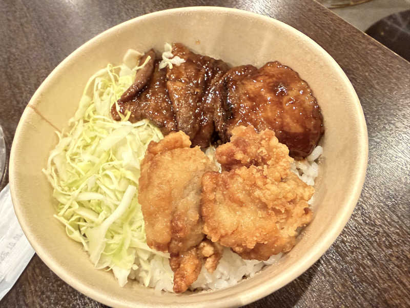 サ活前にキッチンカージョーにお弁当をリクエストしたエビチリ丼を食べました😆美味しかったけど、次回はまだ美味しく作ると言っていました😍