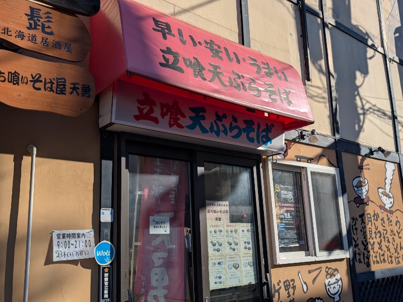 ノー朝食プランだったので、ゲソ丼と天ぷらそばを食べに行きました。日曜定休日で9時から営業しています。