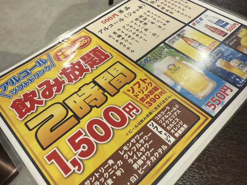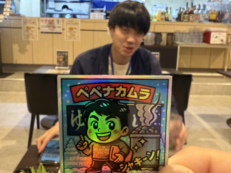 その後は仕事終わりのぺぺ君と7階ののむベサで初めての乾杯🍻2時間飲み放題コースでたっぷり飲める🍺😆今なら先着30人にジェラートも付いてきた❗️😆最近のサウナ情報や熱波師の話題で話が進んで楽しい時間😆🍻ぺぺ君から欲しかったソックリマンシールももらっちゃった❗️😂あっという間に飲み放題2時間終了⏰🍻