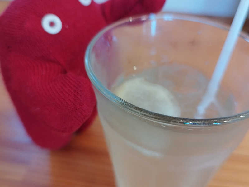 ハピカリ特製ジンジャエール 花びらかなーって思ったら しょうがの薄切りだった!