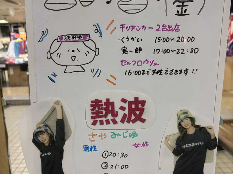 周辺の道の駅ガチャピン集めでもしようと恵庭〜千歳〜ウトナイ湖を周りまた千歳空港まで戻り空港見学✈️✈️✈️朝サウナ出来なかったので帰路の途中で「ピパの湯」で寄り道サウナ✌️到着は17時ジャスト🚗💨するとフロントに貼り紙が・・・男性浴場の高温風呂・洞窟風呂の設備故障の為使用不可との事😭😭😭熱湯入りたかったー😢😢😢でも目的はサウナなのでOK🙆♀️です。
