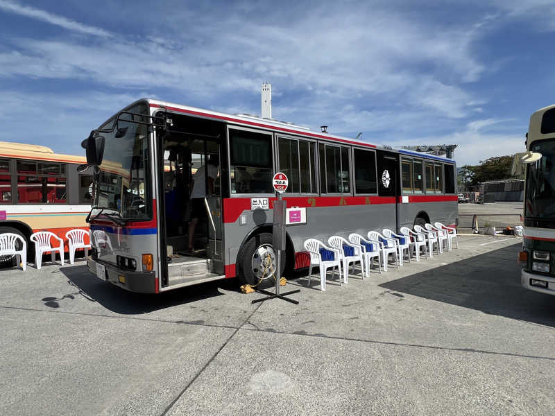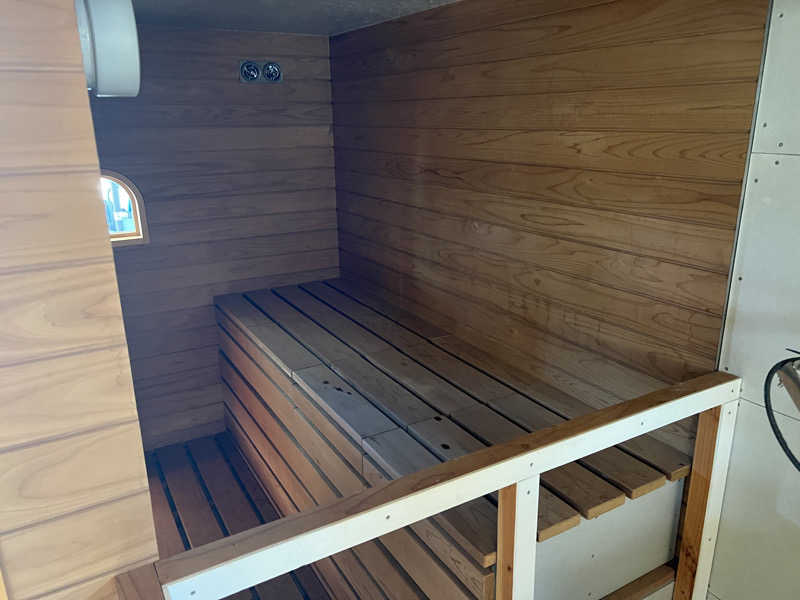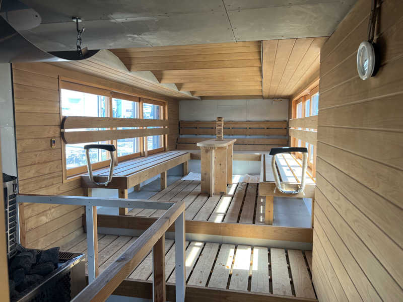 サ室は2つあって1つは3名程が入れる個室。メインのサ室はコの字型のベンチにテーブル付きのシートがあります。テーブルにはサバス仕様のジェンガが備えられてます。サ室での時間潰しに早速始めてみました。ジェンガが湿度で抜け辛いピースもあるし、人の乗り降りでバスが微妙に傾いてテーブルも揺れるし車両のエンジン停止でも揺れて悪戦苦闘💦ジェンガが倒れるか自分が限界で倒れるか⁉️の攻防戦。たまたまサ室でお会いした初対面の方ともゲームを通じて盛り上がりました。